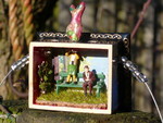 2013Zijden vogel in gouden klokhuisje